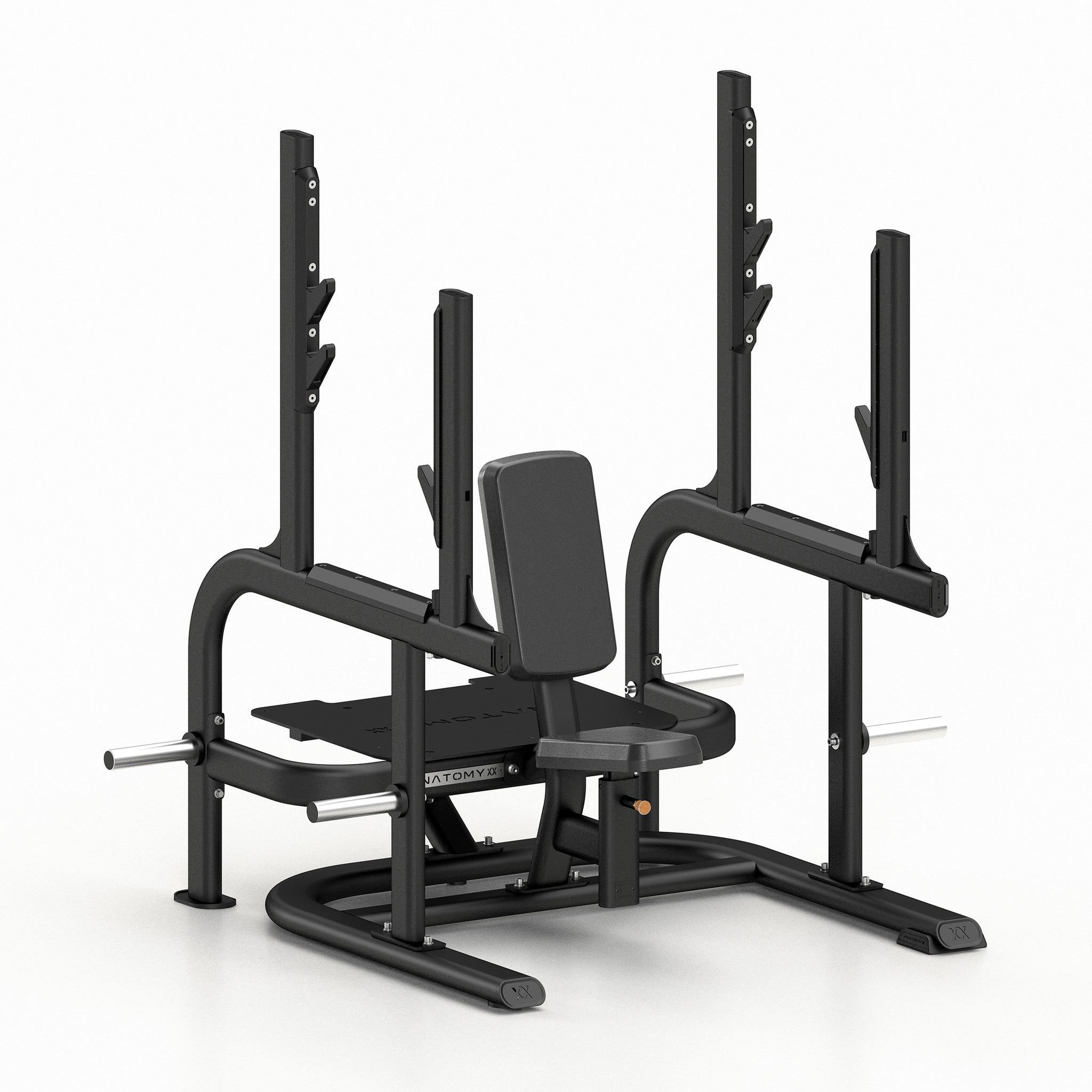 The Anatomy Fitness Olympic Military Press Bench is a high-quality strength training apparatus designed specifically for performing the military press, a fundamental upper body exercise that targets the shoulders, triceps, and upper chest. This bench is engineered to provide the stability and support needed for safely lifting heavy weights overhead, making it an essential piece of equipment for serious lifters and athletes.