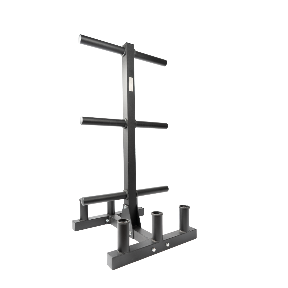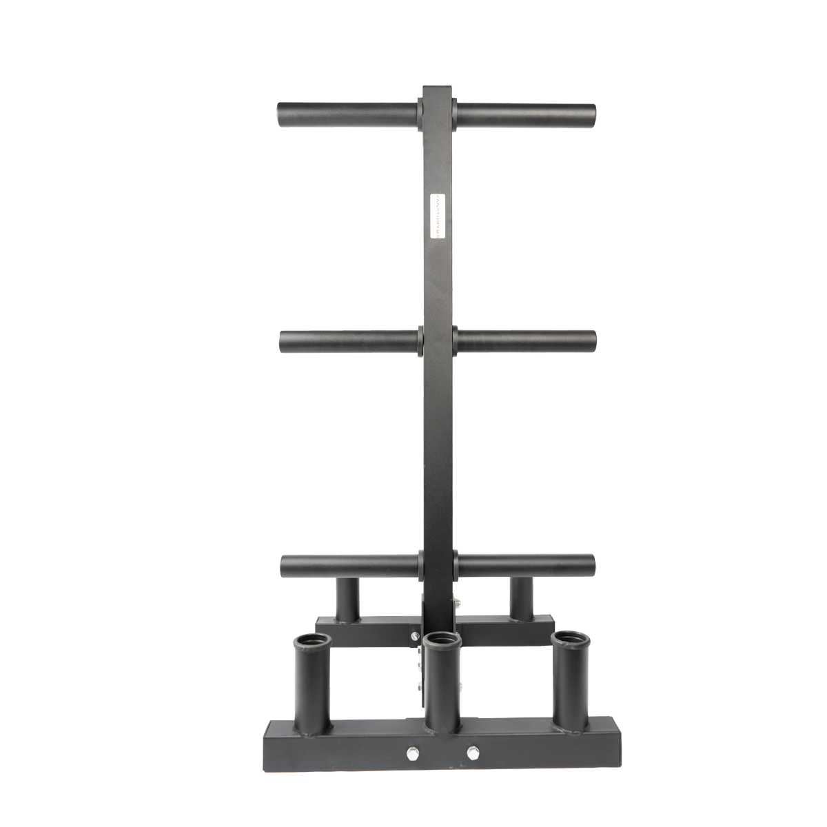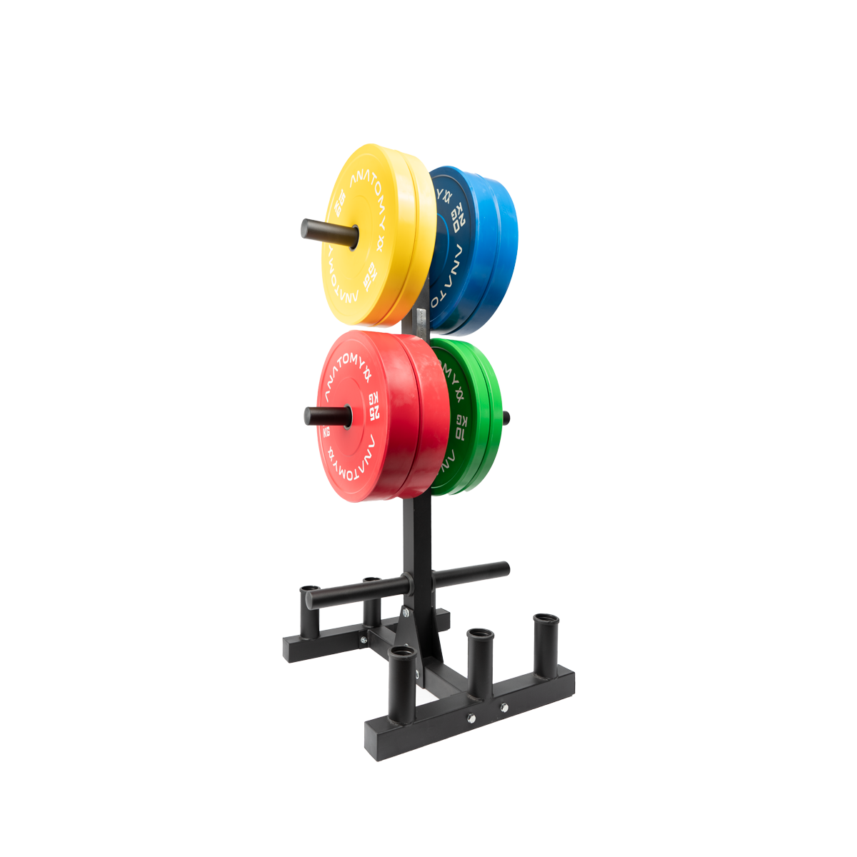 The Anatomy Weight Plate Tree with Barbell Holders is a versatile and space-saving storage solution for weight plates and barbells in any gym or fitness setup. This piece of equipment is meticulously designed to keep your weight plates organized, easily accessible, and your barbells neatly stored.