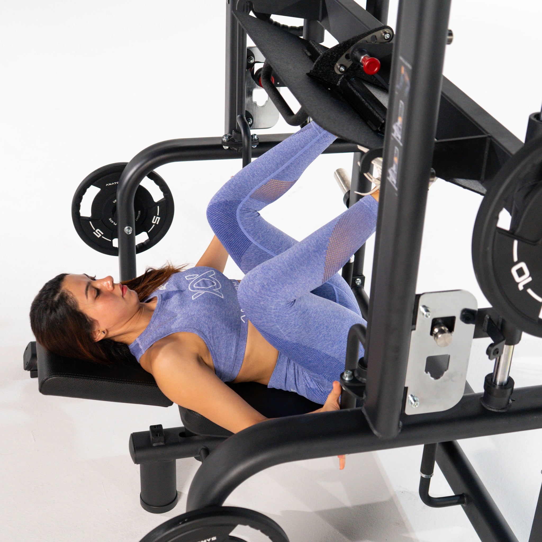 This machine features a sturdy backrest and padded shoulder supports, allowing users to comfortably lie on their back while performing the exercise. The feet are placed on a footplate located directly above the user, and as the legs extend to press the weight upwards, the vertical orientation encourages a deep range of motion, fully engaging the lower body muscles. The vertical position also reduces stress on the lower back, making it a safer alternative for those with back issues.