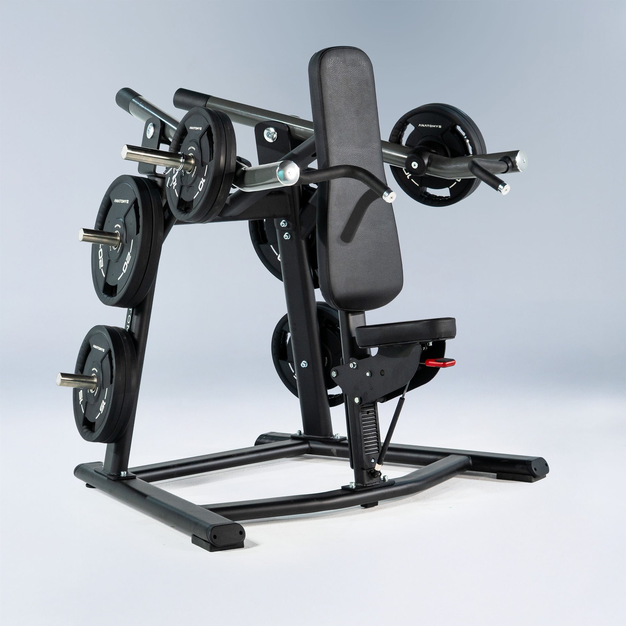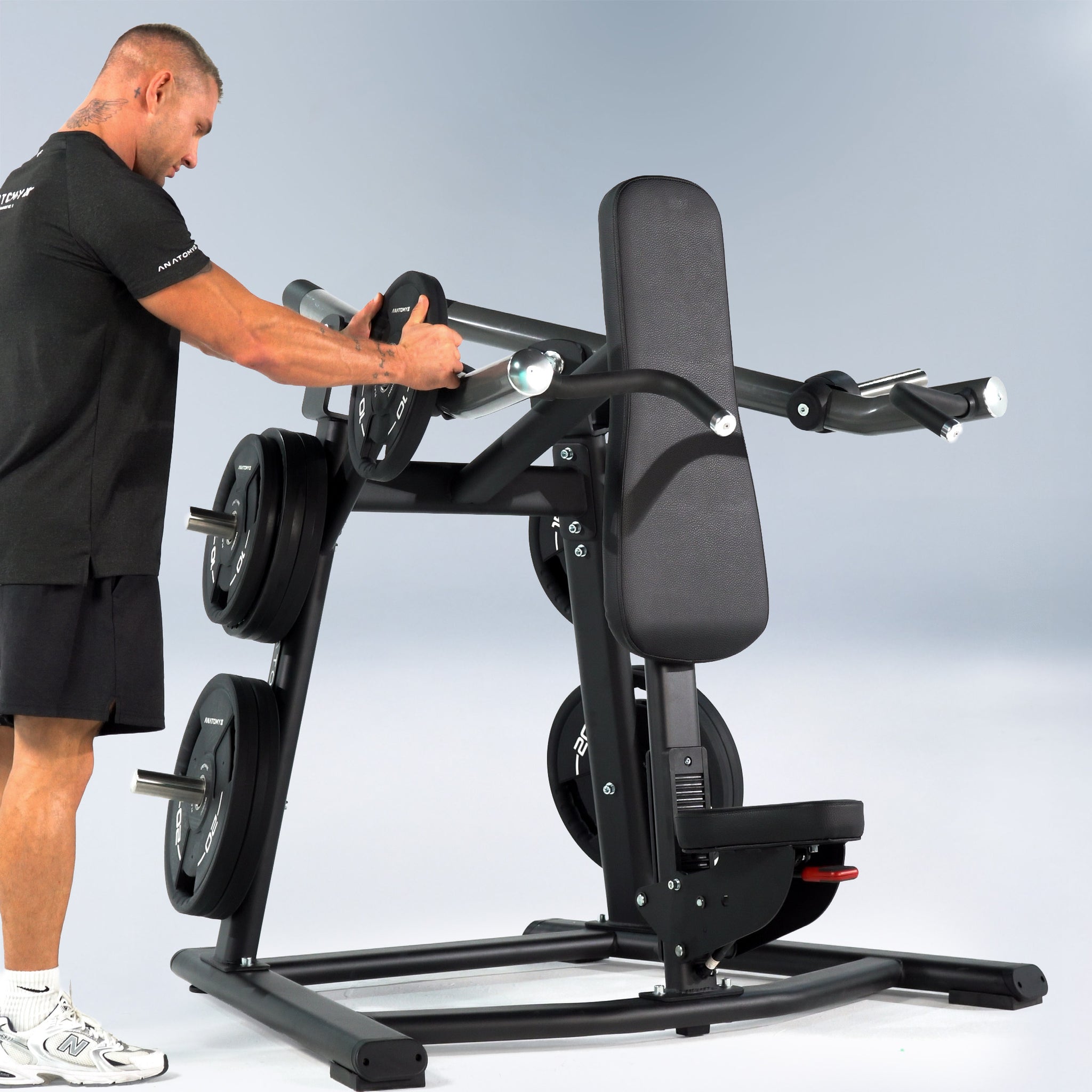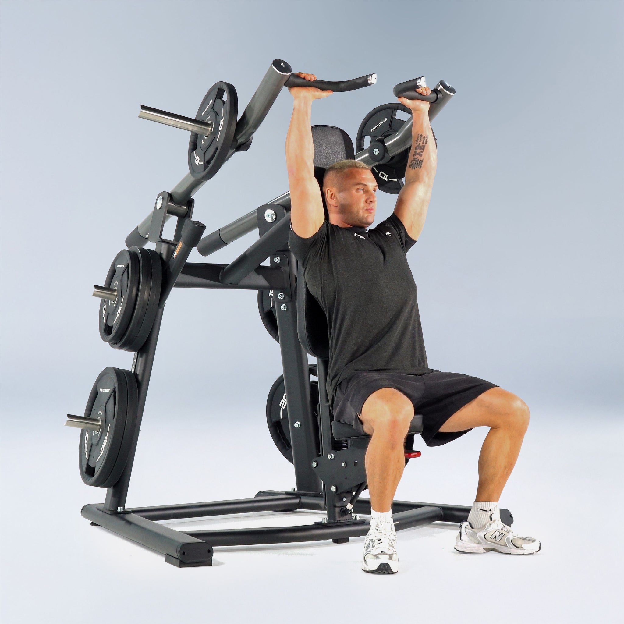 The Anatomy Plate Loaded Shoulder Press is a specialized machine designed to strengthen the shoulder muscles. Operating on a plate-loaded system, it enables users to tailor the resistance to their fitness level and progression.